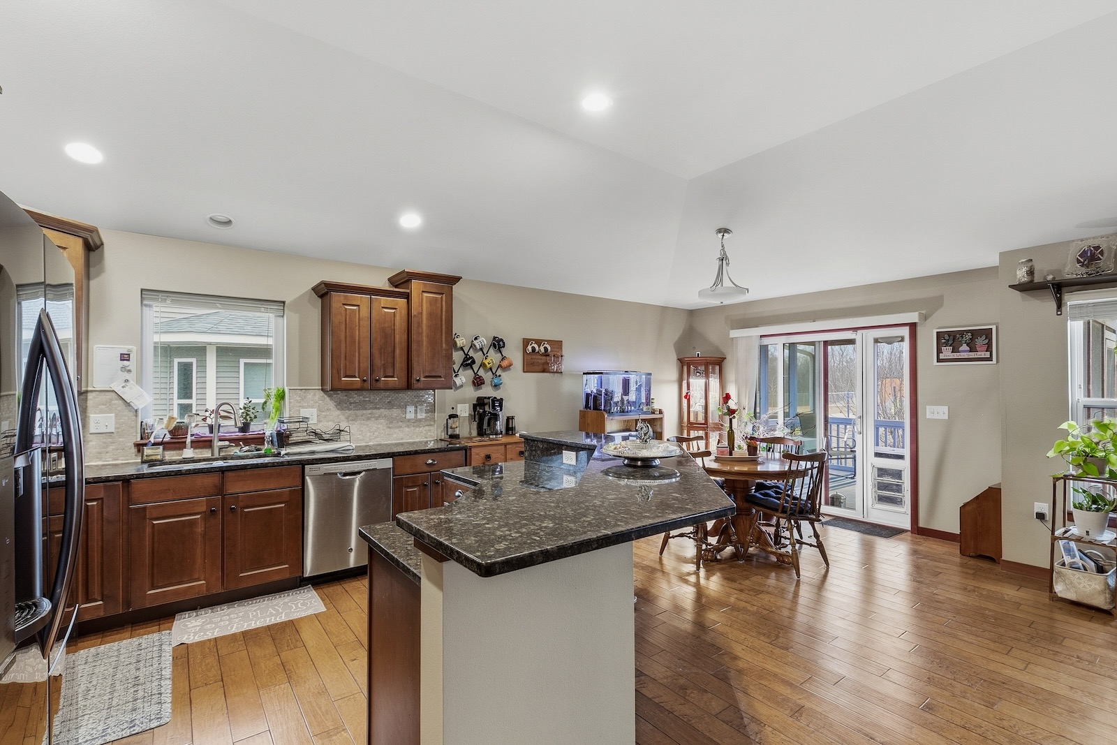 Welcome to this ranch home in Coralville, conveniently located next to an elementary school and just minutes from the university and hospital. This property checks all the right boxes with 4 bedrooms, 3 bathrooms, an attached 3-car garage, and a finished basement. As you enter the home, you’re greeted by an open-concept layout with hardwood flooring connecting the living, dining, and kitchen areas. The kitchen is a standout feature, offering plenty of cabinet space, stainless steel appliances, a stylish backsplash, and a center island with breakfast bar. The dining area provides easy access to the screened-in porch (seller reserves the doggy door). The spacious living room features a partially vaulted ceiling and a cozy gas fireplace. Three bedrooms are located on the main level. The primary suite includes an ensuite bathroom with double vanity, floor-to-ceiling tiled shower, and a walk-in closet that conveniently connects directly to the laundry room. Downstairs, you’ll find a finished basement with daylight windows, a large recreation room with wet bar, a fourth bedroom, and a full bathroom, providing excellent space for guests, entertaining, or additional living area. Outside, you’ll find a refinished screened-in deck, a fenced backyard, and mature apple trees. The sellers also added a 16-foot diameter sand area that was originally used to level their above-ground pool (which they will be keeping). When the pool is removed, the space works great as a fire pit area, and the sellers plan to leave the fire ring in place for showings. Whole house humidifier. Buyer and buyer’s agent to verify all information, including square footage, room sizes, school zones, taxes, exemptions, and zoning. Measurements are approximate. This listing is provided by Robert Strupp, brokered by Home Marketor, Inc. Licensed to sell in Iowa and Illinois. This listing is NOT a for sale by owner. This listing is subject to a listing agreement with Home Marketor, Inc. SimplyFSBO is NOT a real estate brokerage. This home is posted at the request of the seller to maximize exposure. Full Service, Flat Fee MLS services available through Home Marketor, Inc